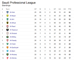 ترتيب الهدافين بطاقات تمريرات حاسمة. لا يقل الصراع على صدارة جدول ترتيب هدافي الدوري السعودي للمحترفين عن اللقب نفسه، مع بدء العد التنازلي لانتهاء الموسم الحالي. هدف مصطفى محمد الأول مع جالاتا سراي ضد دينيزلي سبور (الدوري التركي). الدوري الإنكليزي الممتاز الدوري الفرنسي دوري أبطال أوروبا الدوري الإيطالي الدوري الإسباني الدوري الألماني. ما زال النادي الاهلي في مقدمة جدول الترتيب بعد 31 مباراة، ورغم الخسارة في مباراته الأخيرة أمام المصري بثلاث أهداف مقابل هدفين، ويحتل الاهلي مركز الصدارة برصيد 71 نقطة، بعد أن فاز في 22 مباراة.