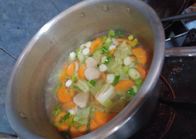 Sop bakso ayam jamur dan sayuran.